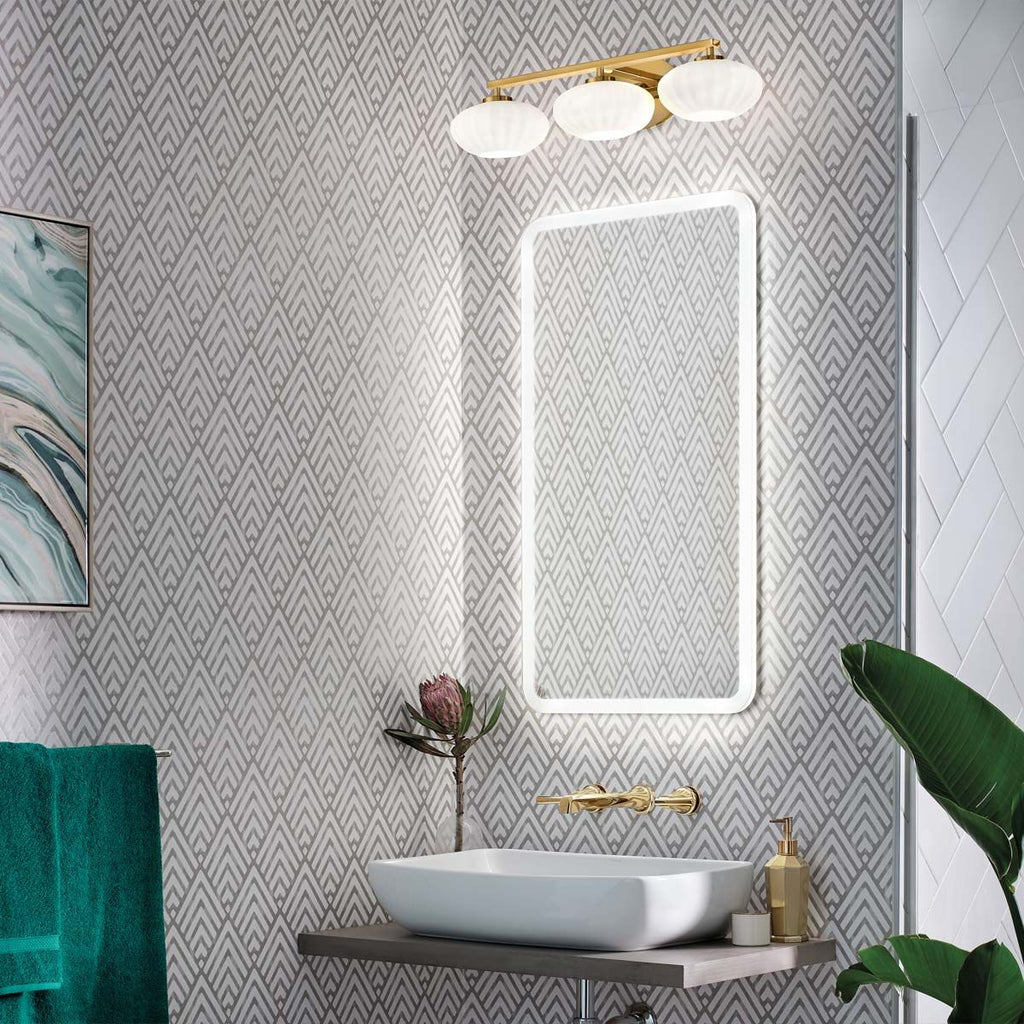Enhance your living room or bedroom with the Pim 3 Light Gold Wall Light—a sophisticated blend of mid-century modern design and contemporary elegance. Featuring beautifully rounded satin-etched opal glass shades, this fixture adds a touch of timeless style above any mirror. Engineered for versatility, the Pim range is IP44 rated and comes complete with energy-efficient G9 LED lamps, making it ideal for bathroom use as well as other living areas. Choose from luxurious Fox Gold or sleek Polished Chrome finishes to perfectly complement your décor. Shop with confidence from the UK’s leading lighting specialists and enjoy free 90-day UK returns.| Projection | 21.9cm/8.6" |