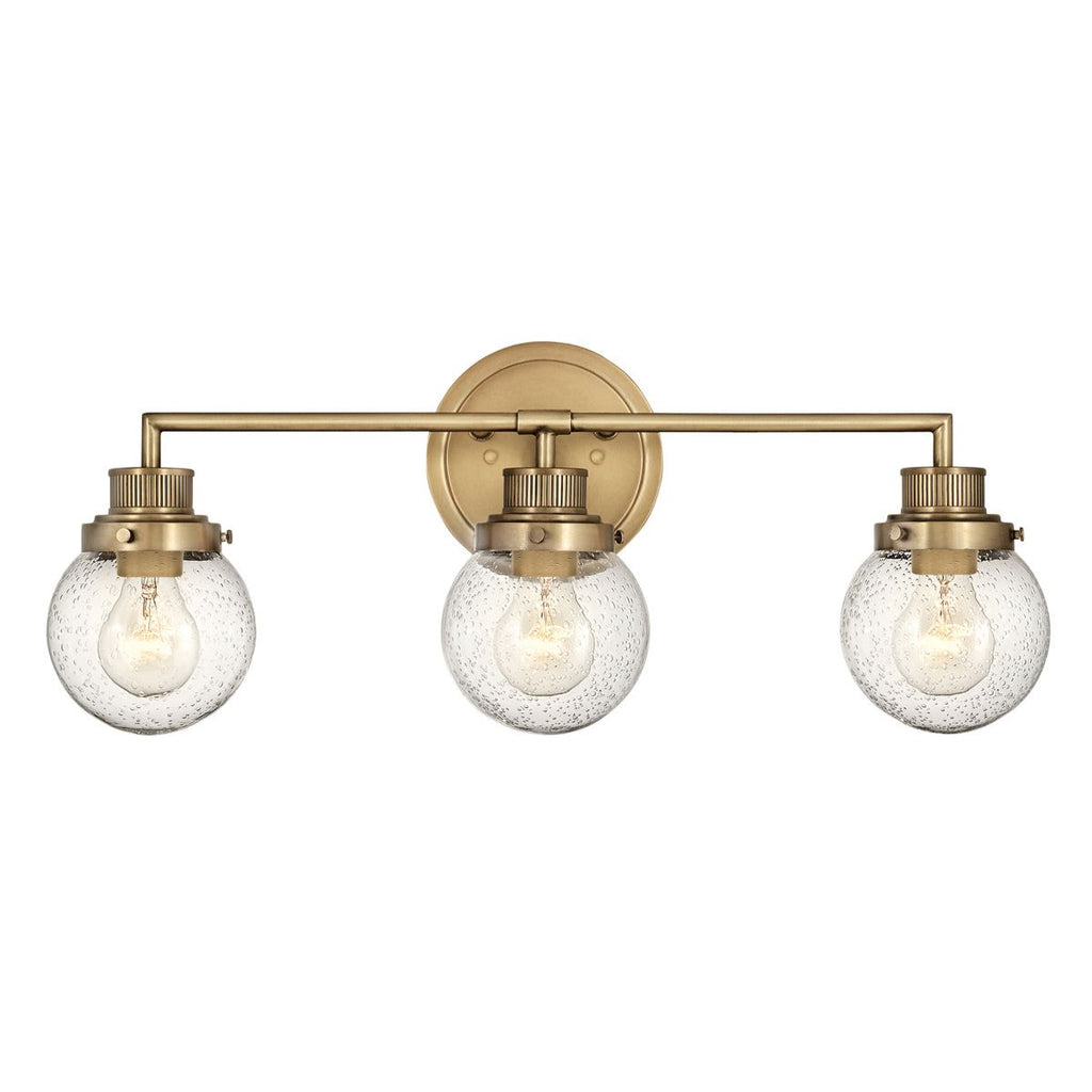 Elevate your bathroom with the Poppy 3 Light Brass Bathroom Wall Light. This striking fixture features clear seeded glass spheres that beautifully complement the refined, ribbed Heritage Brass framework, creating a sophisticated and timeless silhouette. The elegant stepped backplate and crisp crossbar provide a sturdy, stylish anchor for the airy design, while the mid-century inspired aesthetic adds a touch of modern luxury to any space. With an IP44 rating, the Poppy is perfectly suited for bathroom environments, offering both style and durability. Shop with confidence from the UK’s leading lighting experts and enjoy free 90-day UK returns.| Projection | 18.3cm/7.2" |
