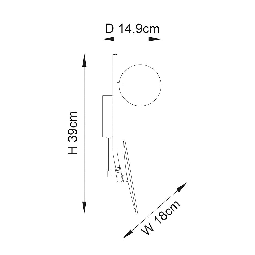 A unique monotone design silhouette finished in matt black. The geometric structure supports a single matt opal glass sphere with an adjustable magnifying mirror and it is IP44 rated. Matching items are available for a coordinated look.