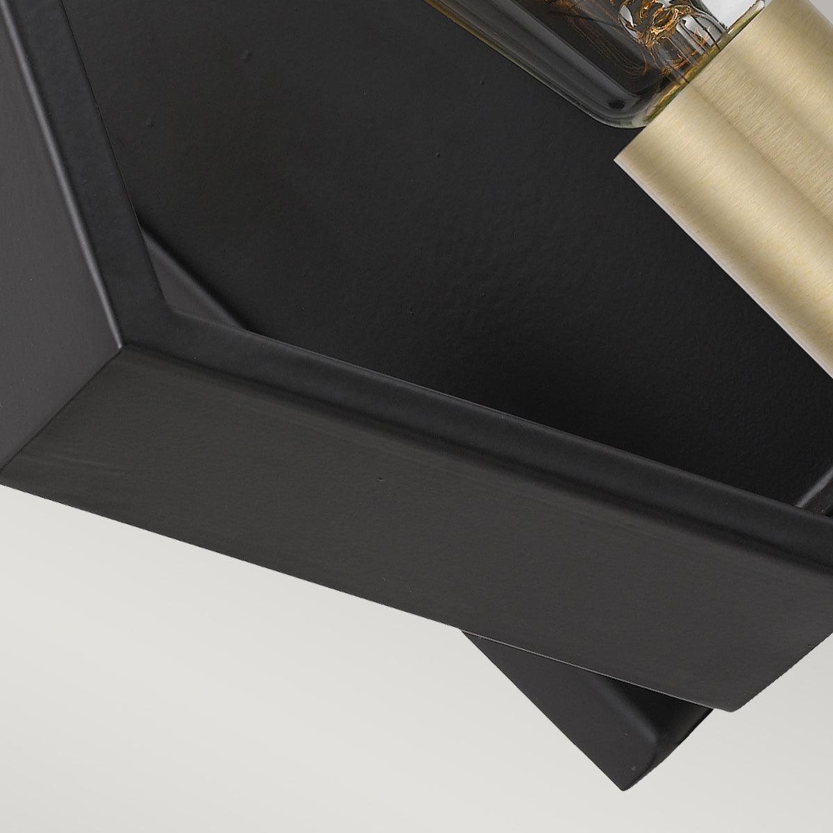 The 1 light Wall light Bismarck has a geometric frame finished in Earth Black, which emphasizes the bold lines of its modern design. Painted gold sockets serve as the perfect contrast in both tone and style, adding drama and depth.