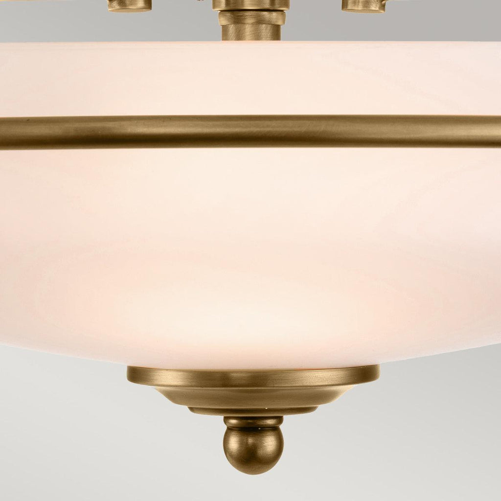 This understated style provides a stylish, soft modern look for almost any room. The etched shade is painted white inside, diffusing the light evenly and illuminating your home with a soothing glow. It is held in place by softly curved arms, finished in Weathered Brass.