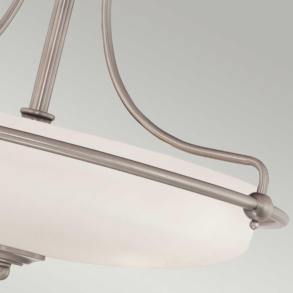 This Quoizel Griffin Antique Nickel Finish 4 Light Semi Flush Ceiling Light from Elstead Lighting is the perfect choice for relaxed mood lighting. The opal glass shade softens the light, and the antique nickel finish complements it nicely, with gently curving arms and understated detail.
