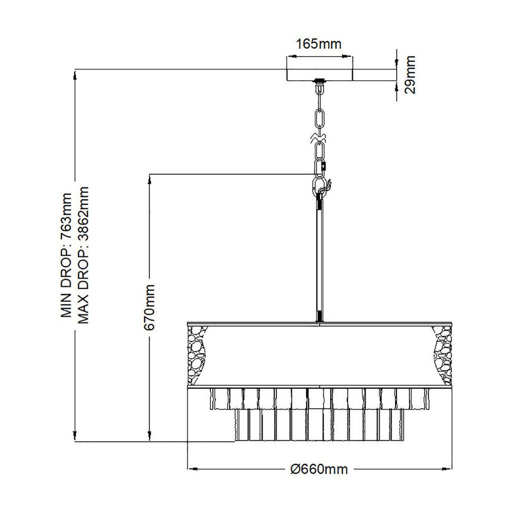 Enhance your living room or bedroom with the Reverie 8 Light Gold Pendant—a striking fusion of luxurious finishes and elegant design. The bold, hammered stainless steel drum encircles exquisite textured glass accents, creating a captivating visual statement from every angle. Thoughtfully crafted metal binding adds a refined, artisan detail, ensuring this pendant light stands out as a true centerpiece. Shop with confidence from the UK’s leading lighting specialists and enjoy free 90-day UK returns on your purchase.| Adjustable Drop | 386.2cm/152" |
