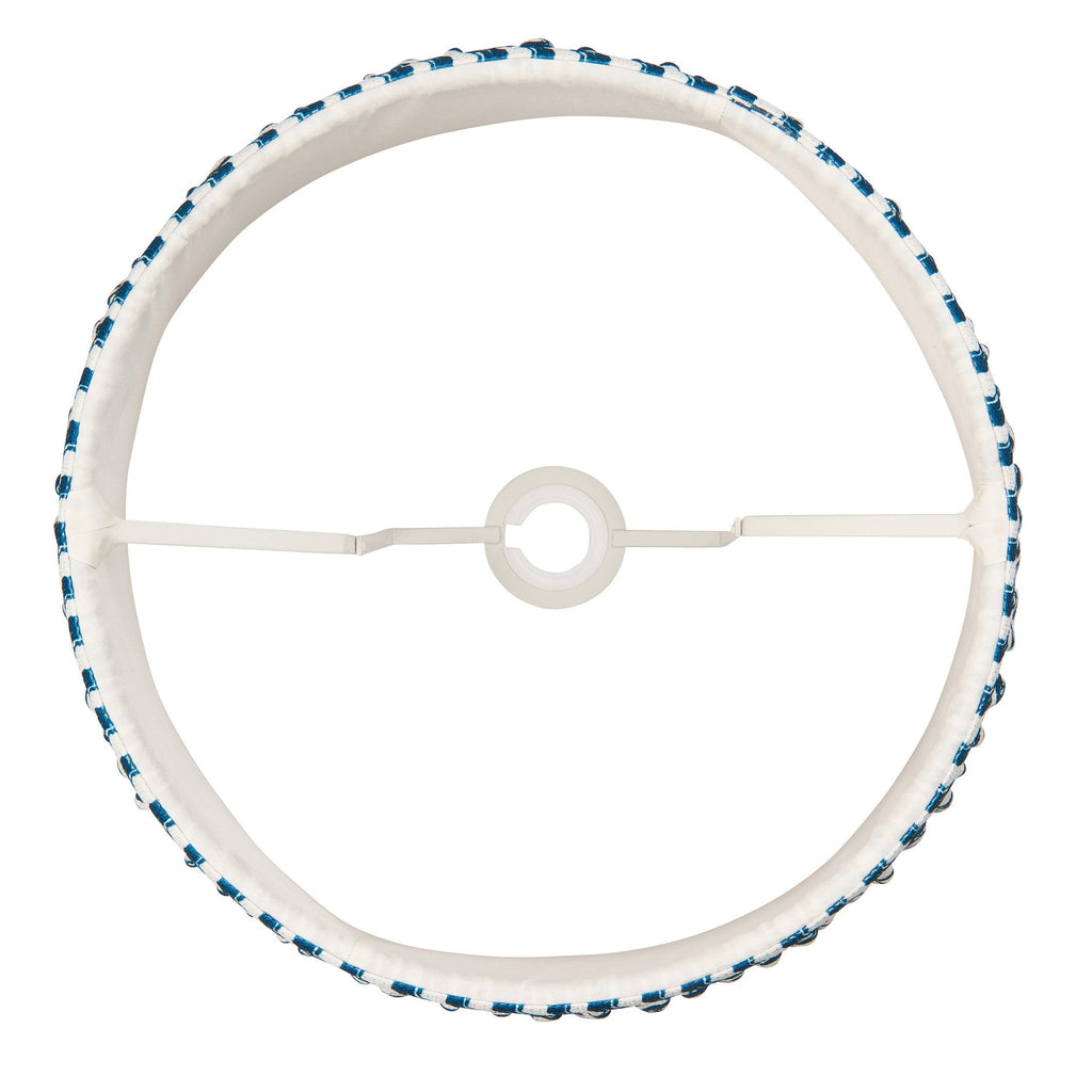Introducing our stunning 35cm tapered shade, featuring a reversible white gimbal for versatile styling. Adorned with a captivating ripple pattern in marlin blue and elegant taped edge detailing, this shade boasts a sleek plain inner lining that enhances its sophisticated appeal. Ideal for elevating the ambiance of your dining room, it pairs beautifully with our exquisite table lights, floor lamps, or cable sets, creating a warm and inviting atmosphere for your gatherings. Enjoy peace of mind with our fast, secure delivery and hassle-free returns, ensuring a safe online shopping experience. Transform your space today with this exquisite lighting solution!| Shade Height | 24cm/9.4" |
