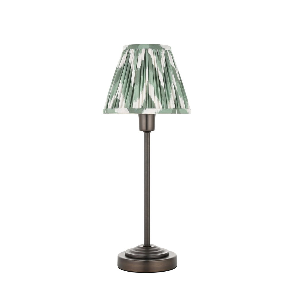 Rise Bronze Table Lamp & Green Ikat 16cm Shade