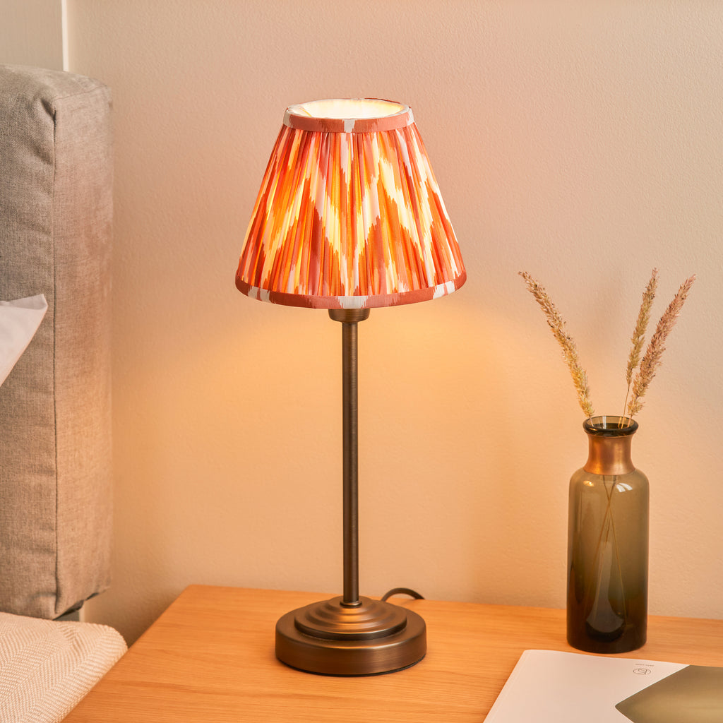 Rise Bronze Table Lamp & Orange Ikat 16cm Shade