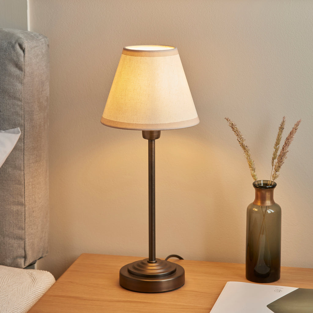 This elegant table lamp is the perfect foundation for showcasing your personal style. Featuring a timeless stepped design in an antique bronze finish, it offers a refined silhouette that complements both classic and contemporary interiors. Paired with our Ivy 16cm shade.