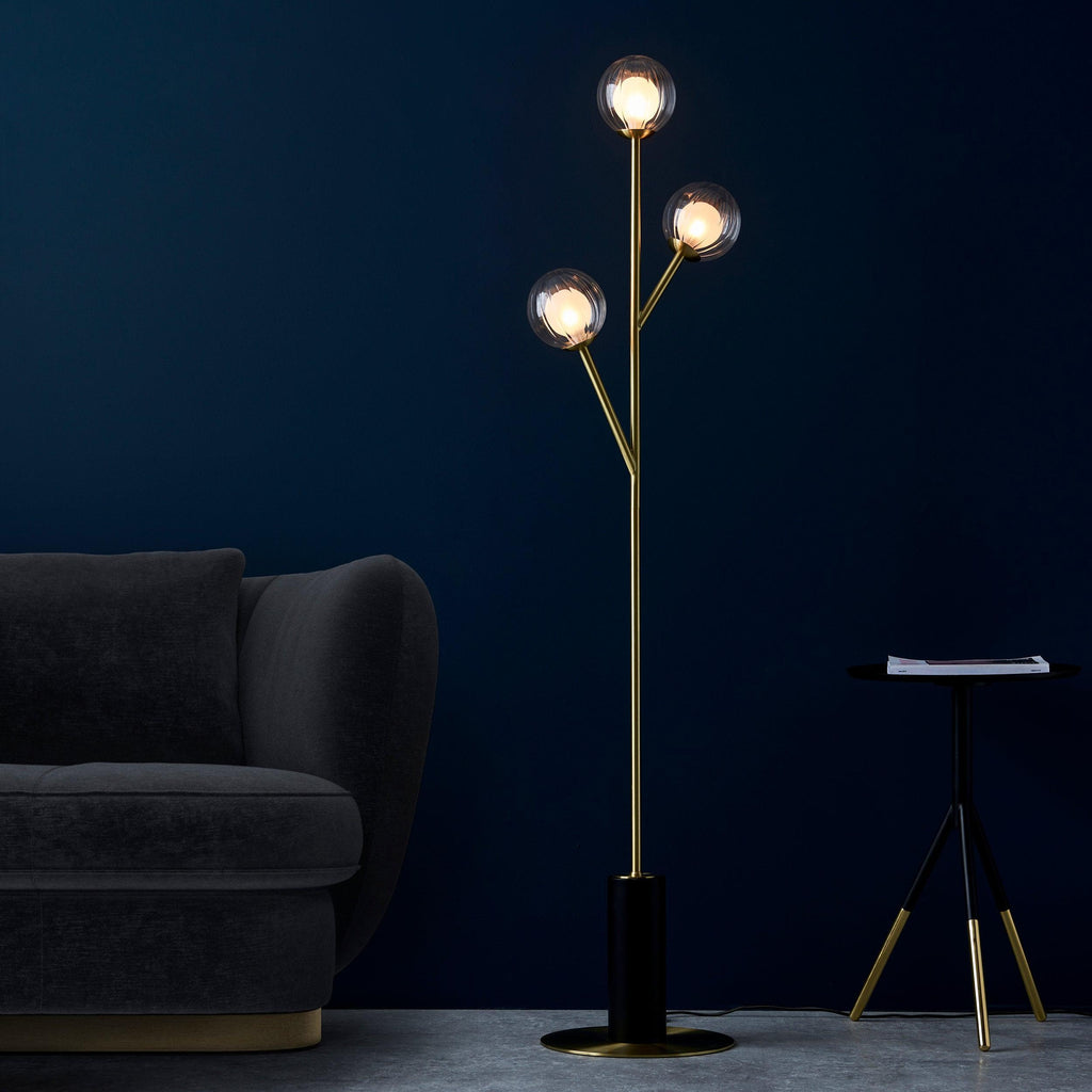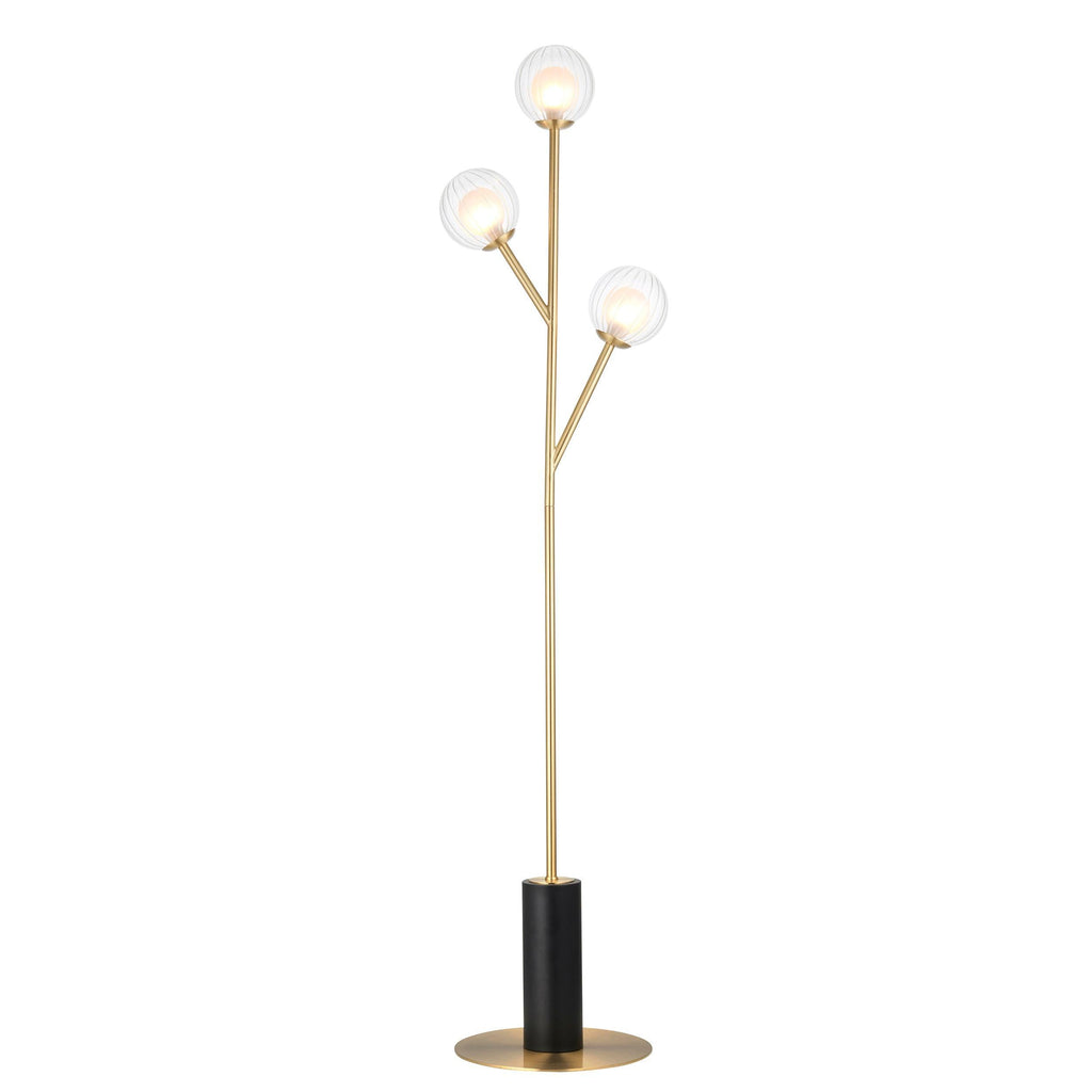 Riviera Brass Art Deco 3 Light Floor Lamp - Clear Ribbed Glass