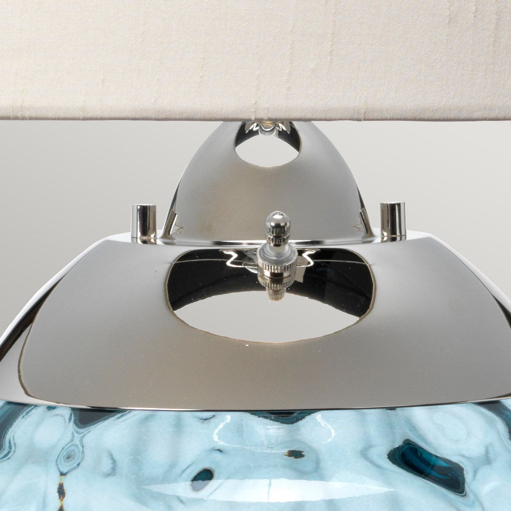 Experience the elegance of the Samara Light Blue Glass Table Lamp—a stunning fusion of textured blue blown glass, refined polished nickel accents, and a beautifully hand-crafted scallop taupe faux silk shade (ref LSUK001). Designed for versatility, the innovative 4-way switch allows you to control the shade and glass lighting independently, creating the perfect ambiance for any setting. The lamp includes a GU10 bulb in the base for added convenience. Shop with confidence from the UK’s leading lighting specialists and enjoy free 90-day UK returns. Enhance your living room or bedroom with a statement piece that combines timeless style and modern functionality.| Height | 71.5cm/28.1" |