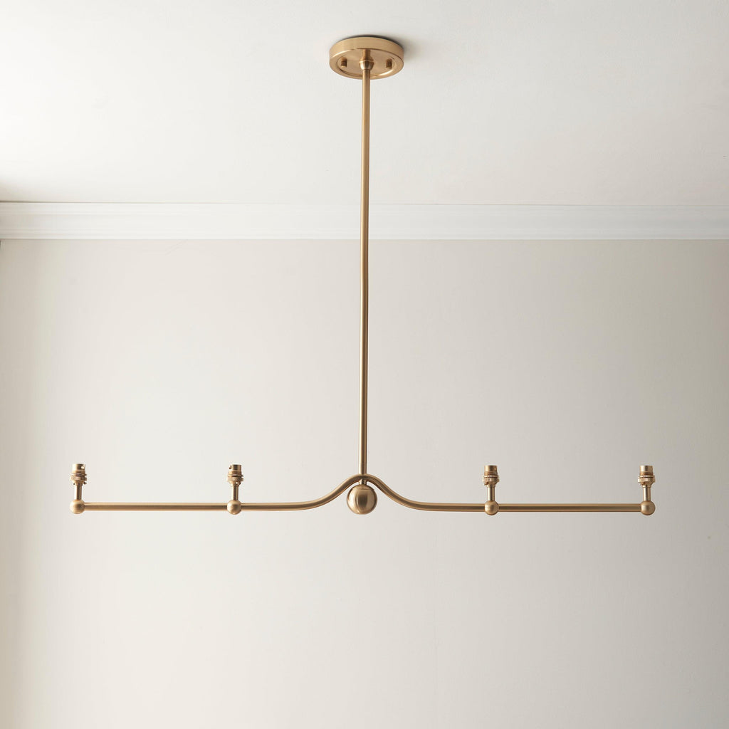 Introducing our stunning 4-light classic linear pendant fitting, a perfect centrepiece for your living room that exudes elegance and sophistication. This exquisite fixture features B22 lamp holders, providing an authentic touch, and is beautifully finished in brushed aged brass for a timeless appeal. To complete the look, pair it with any of our decorative fabric shades in 16cm or 20cm sizes, allowing you to customize your lighting to suit your style. Explore our matching wall light, table light, and pendant options to create a cohesive lighting design throughout your home. Shop with confidence, knowing that our hassle-free returns policy ensures your satisfaction. Illuminate your living space with this captivating pendant and transform your home into a haven of style and warmth!