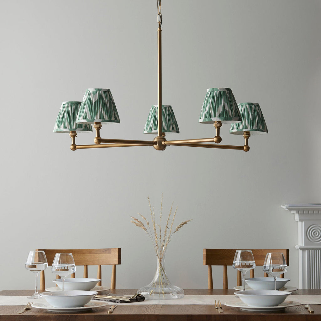 Santiago Brass 5 Light Pendant Ceiling Light With Green Zigzag 16cm Shades
