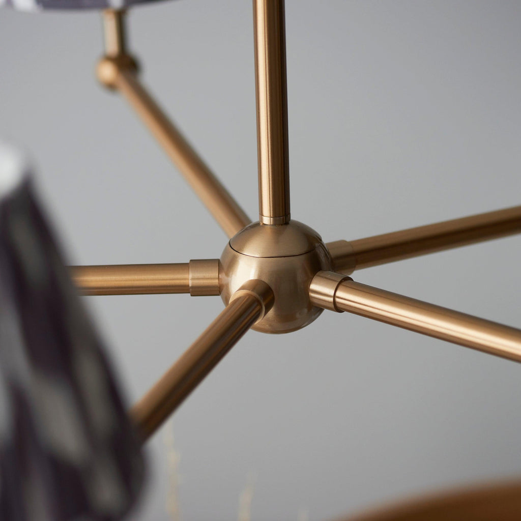 Santiago Brass 5 Light Pendant Ceiling Light With Grey Zigzag 16cm Shades