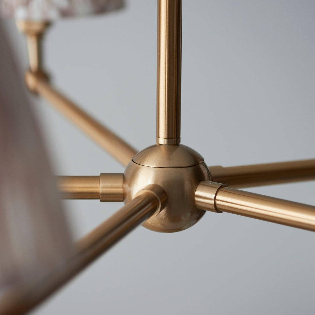 Santiago Brass 5 Light Pendant Ceiling Light With Neutral Ikat 16cm Shades