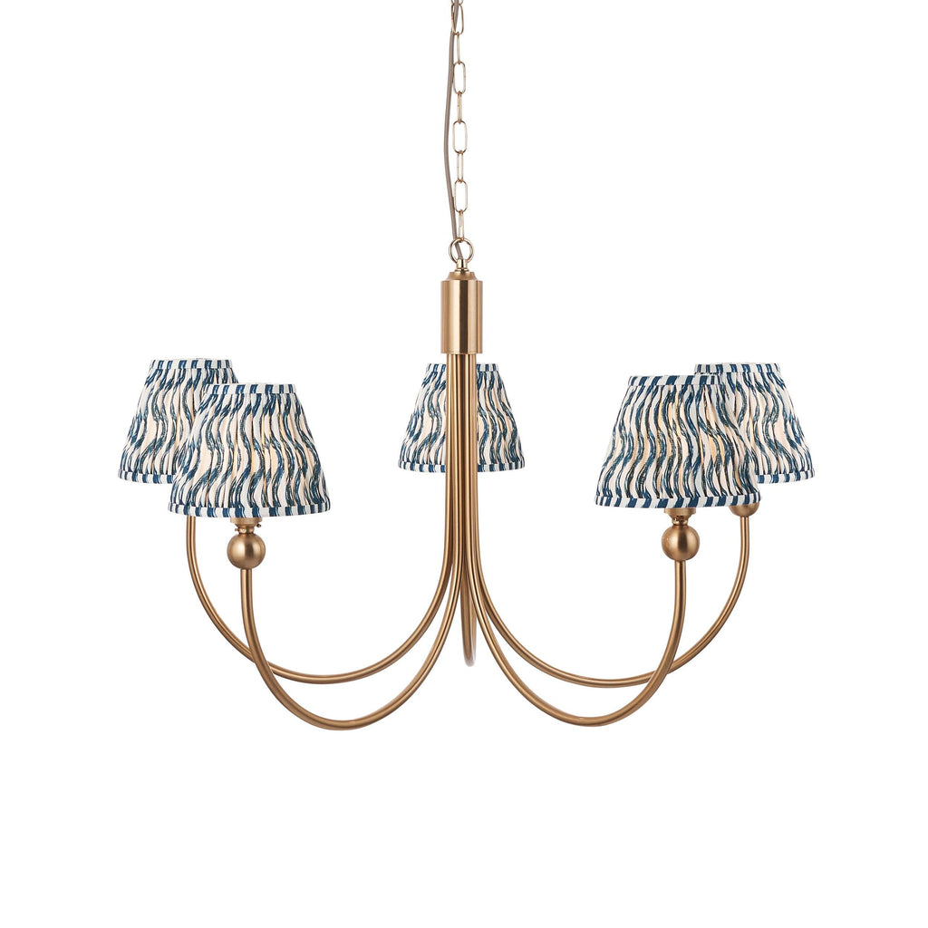 Santiago Brass Chandelier With Blue Ripple 16cm Shades