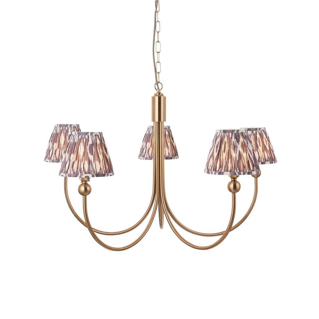 Santiago Brass Chandelier With Grey Ikat 16cm Shades