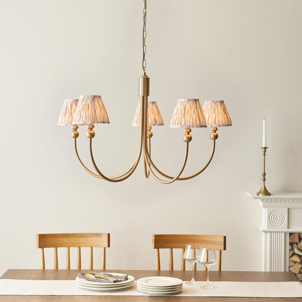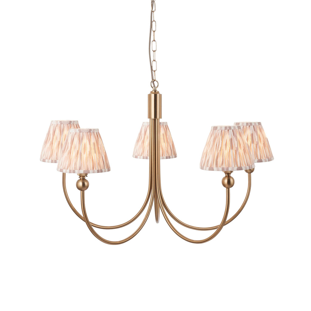 Santiago Brass Chandelier With Neutral Ikat 16cm Shades