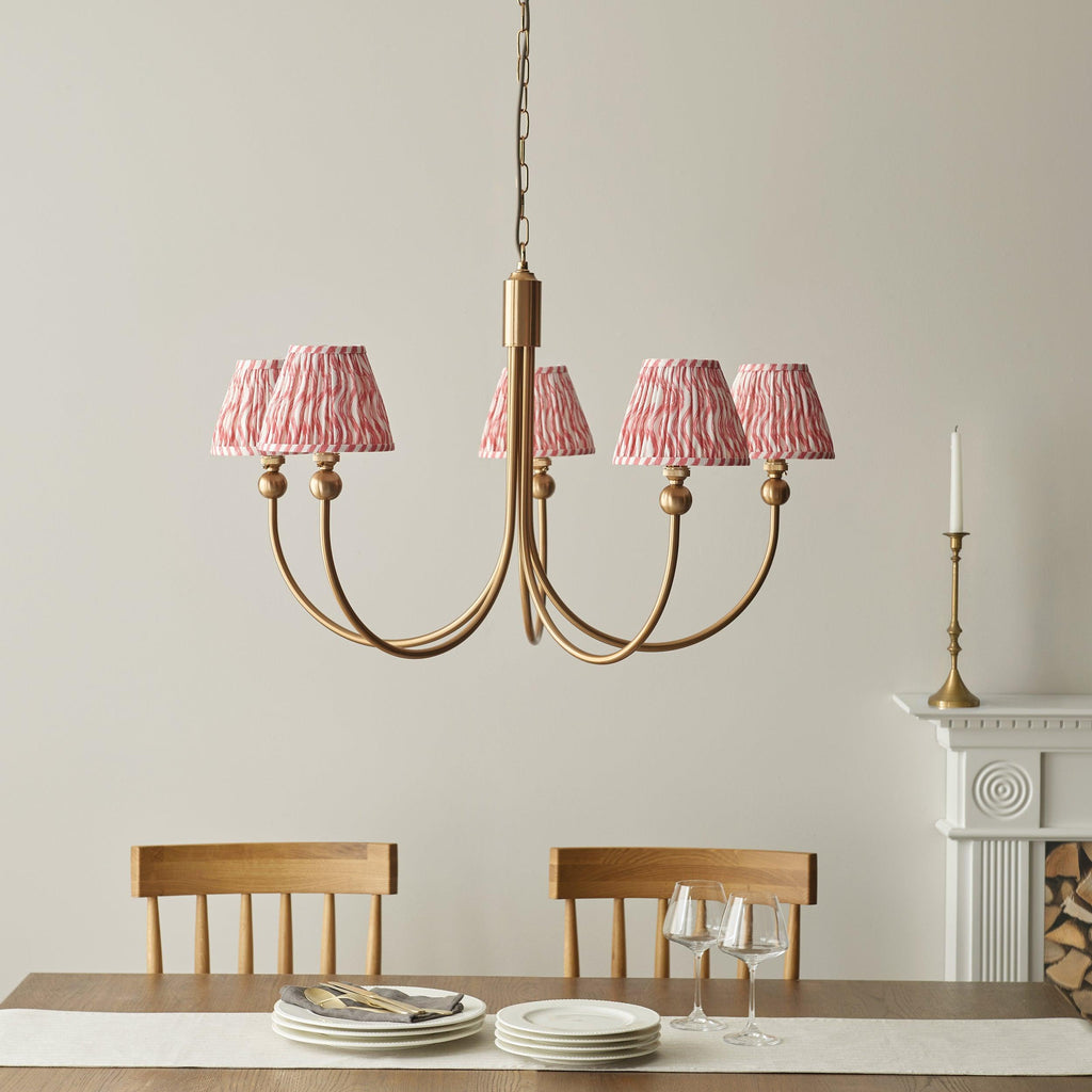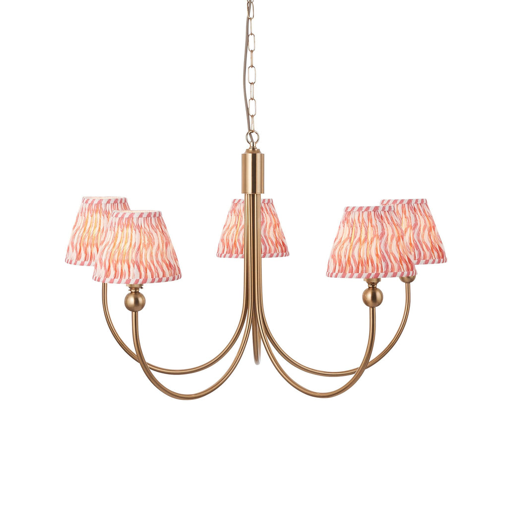 Santiago Brass Chandelier With Pink Ripple 16cm Shades
