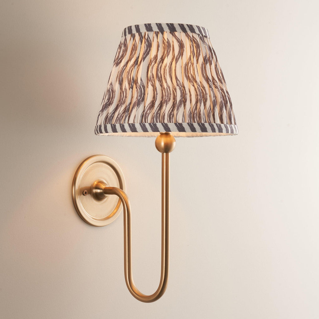 Illuminate your space with timeless elegance and sophistication. Introducing our exquisite long line wall light, featuring an authentic B22 lamp holder and a classic flat wall back, all beautifully finished in brushed aged brass. This stunning piece is paired with a chic 20cm pearl grey ripple fabric shade, adding a touch of modern luxury to any room. Designed to captivate and impress, this wall light is not only a statement of style but also compatible with energy-efficient LED lamp bulbs, offering you both beauty and practicality. Transform your home with this perfect blend of classic charm and contemporary flair.| Projection | 22cm/8.7" |