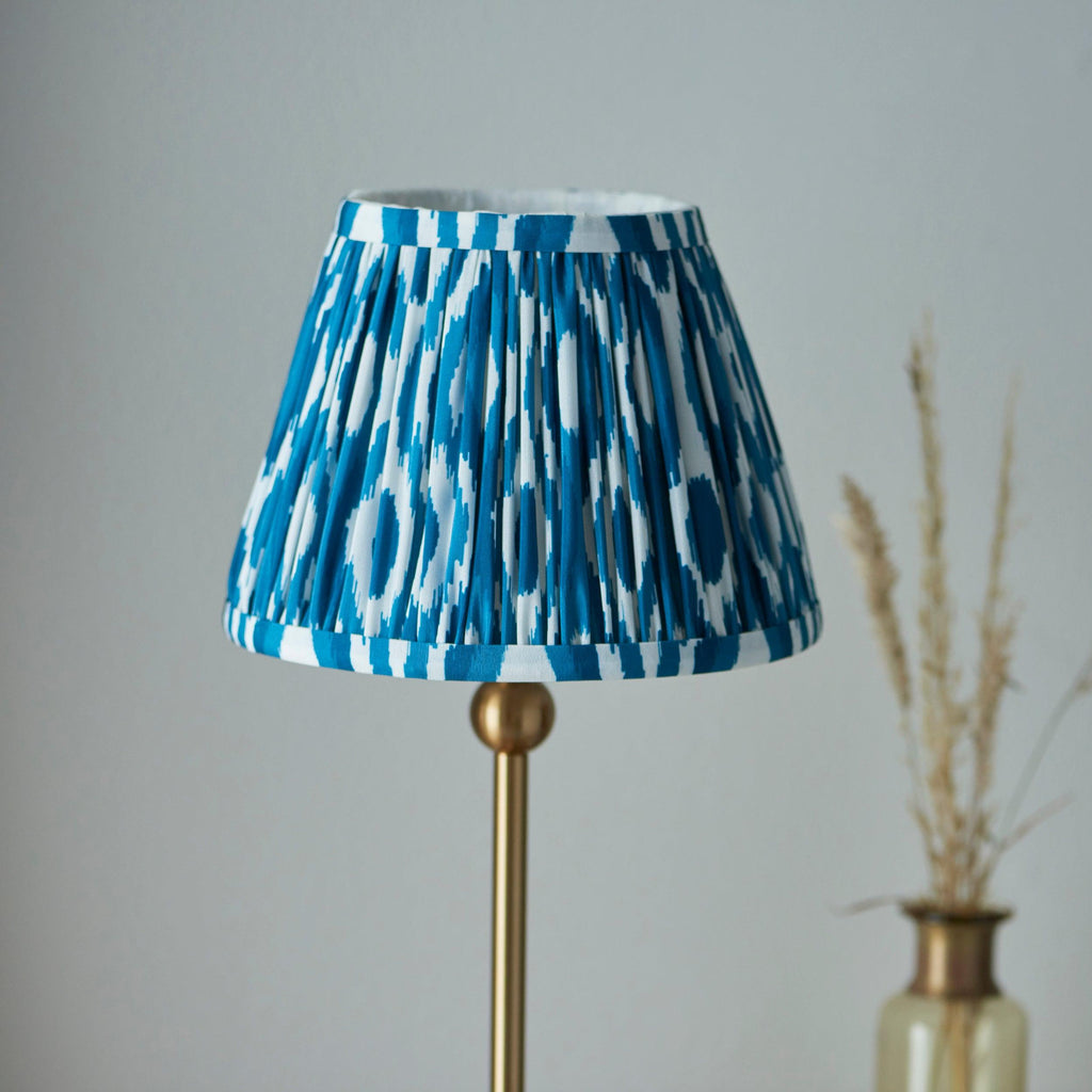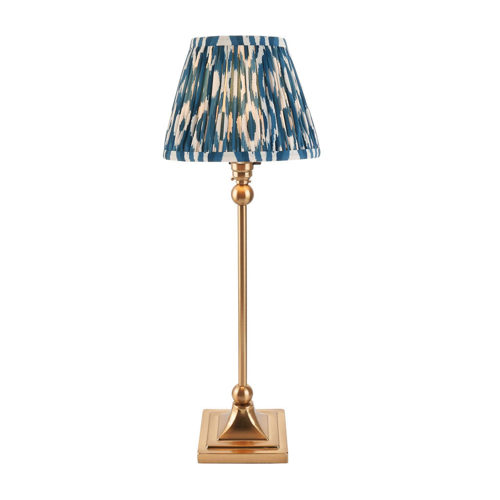 Santiago Small Brass Table Lamp With Blue Ikay Shade