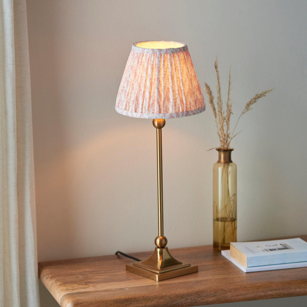Santiago Small Brass Table Lamp With Peachy Leaf Shade