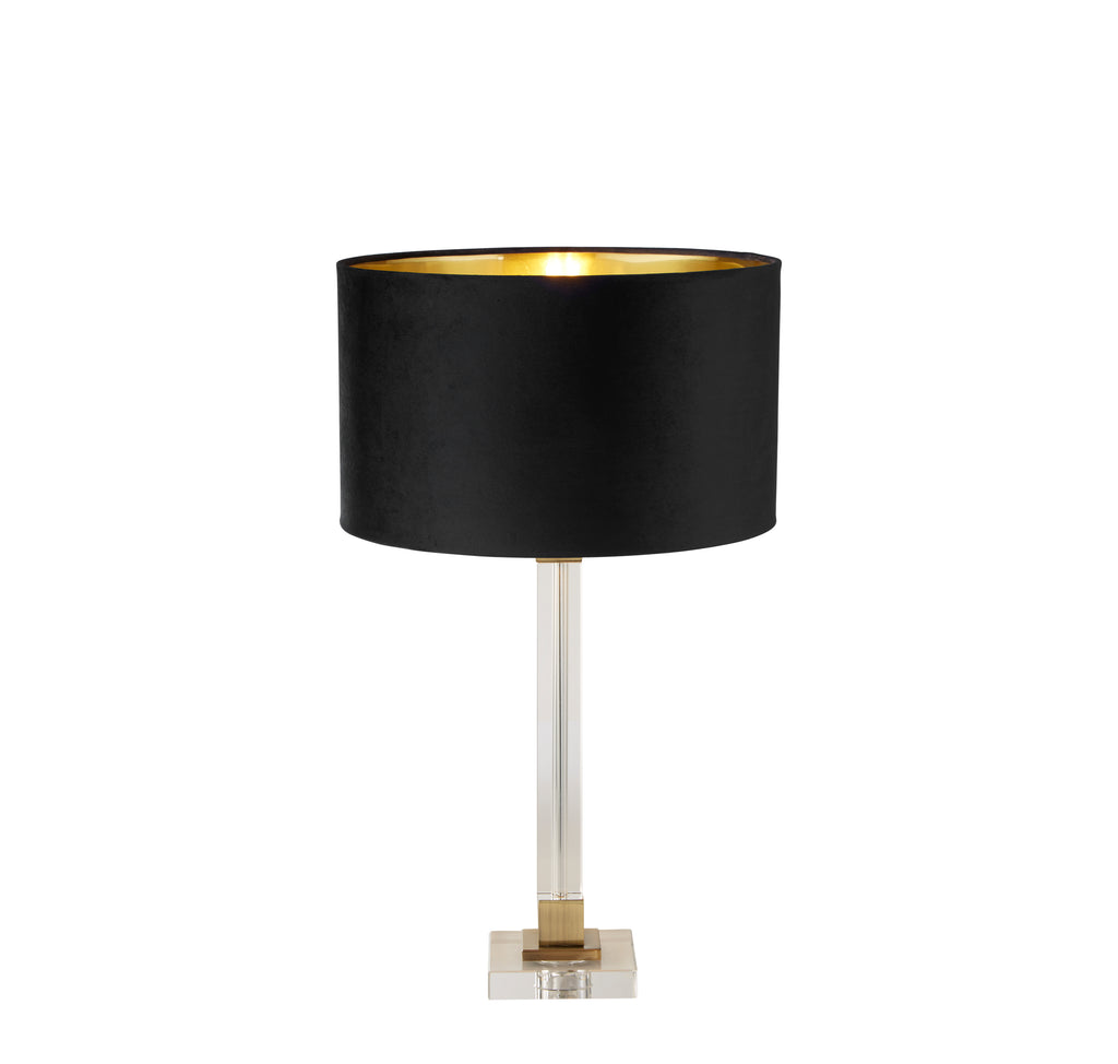 Scarborough Table Lamp - Crystal, Brass Metal & Black Velvet