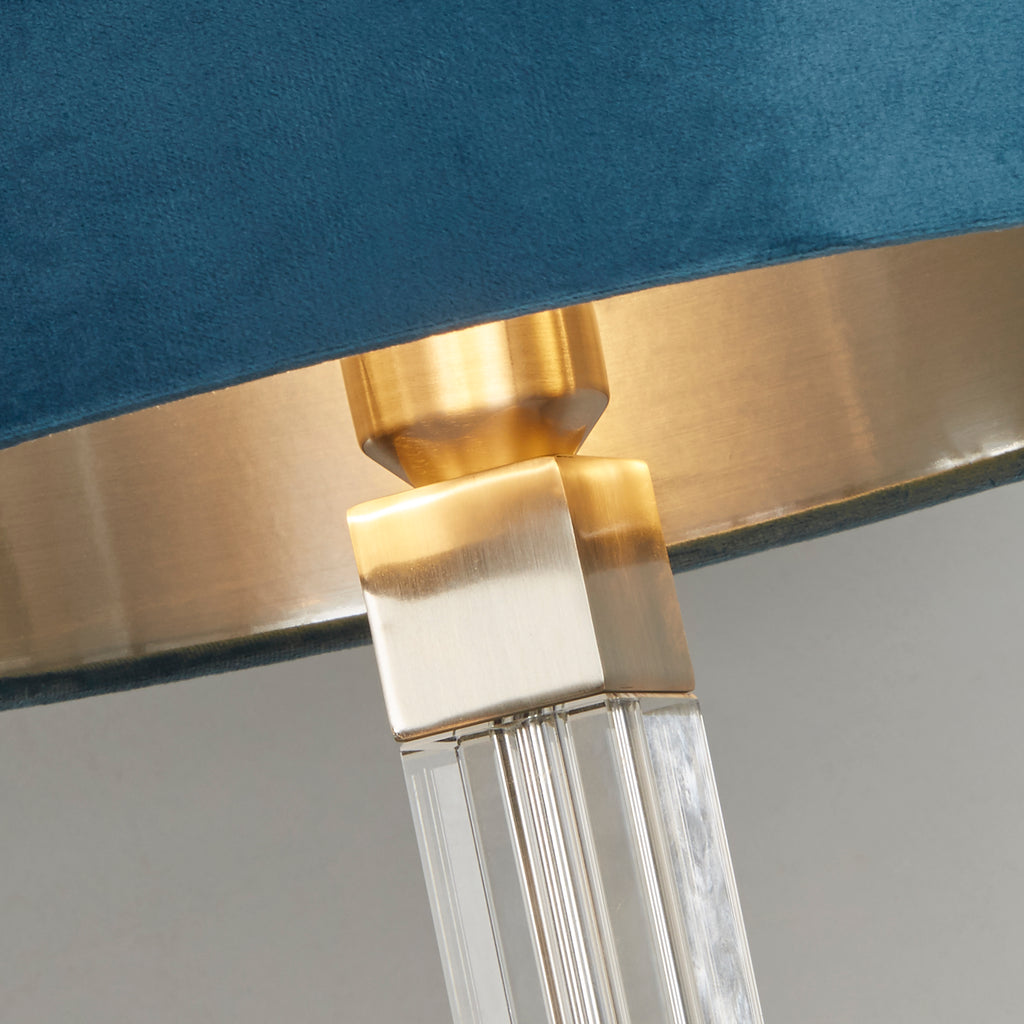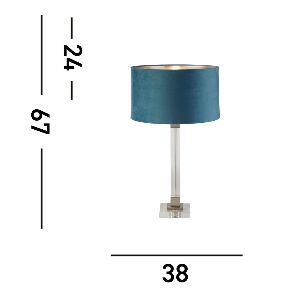 Scarborough Table Lamp - Crystal, Satin Nickel & Teal Velvet