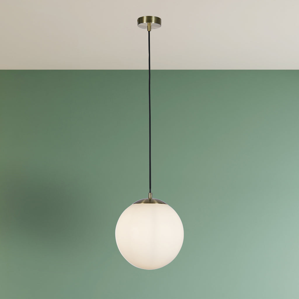 Searchlight Atom II Brass Pendant - Opal Glass Globe Shade - 30cm