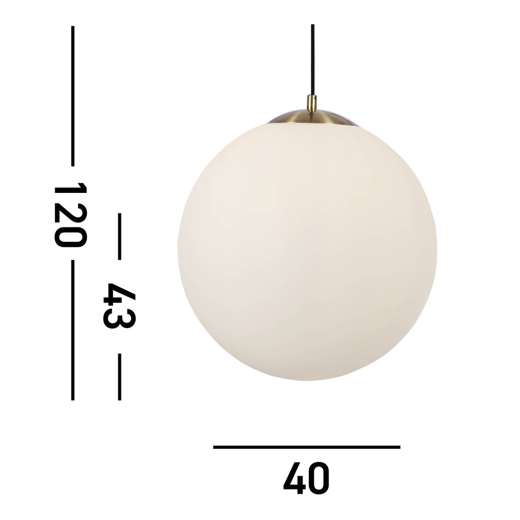 The Atom II Pendant is a contemporary and minimalist lighting fixture designed to elevate the ambiance of any bedroom or living room. Crafted with a combination of durable antique brass metal and opal glass shade, this pendant showcases a perfect blend of style and functionality. At 40cm diameter, it features a stunning white globe shade that adds a clean and modern aesthetic to any space, and suitable for a variety of design styles. The white gloss glass shade further enhances the lighting experience by reflecting and amplifying the light, adding a touch of elegance and sophistication, while the white colour complements any colour scheme and seamlessly integrates with contemporary and minimalist interiors. Height adjustable up to 1.2m, this single pendant will suit a variety of ceiling heights.| Height | 140cm/55.1" |