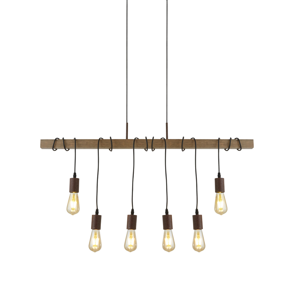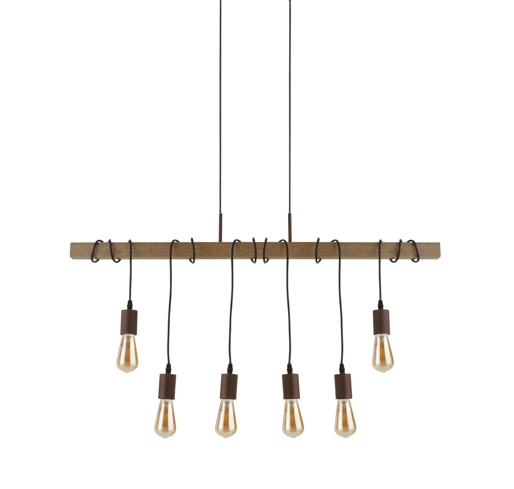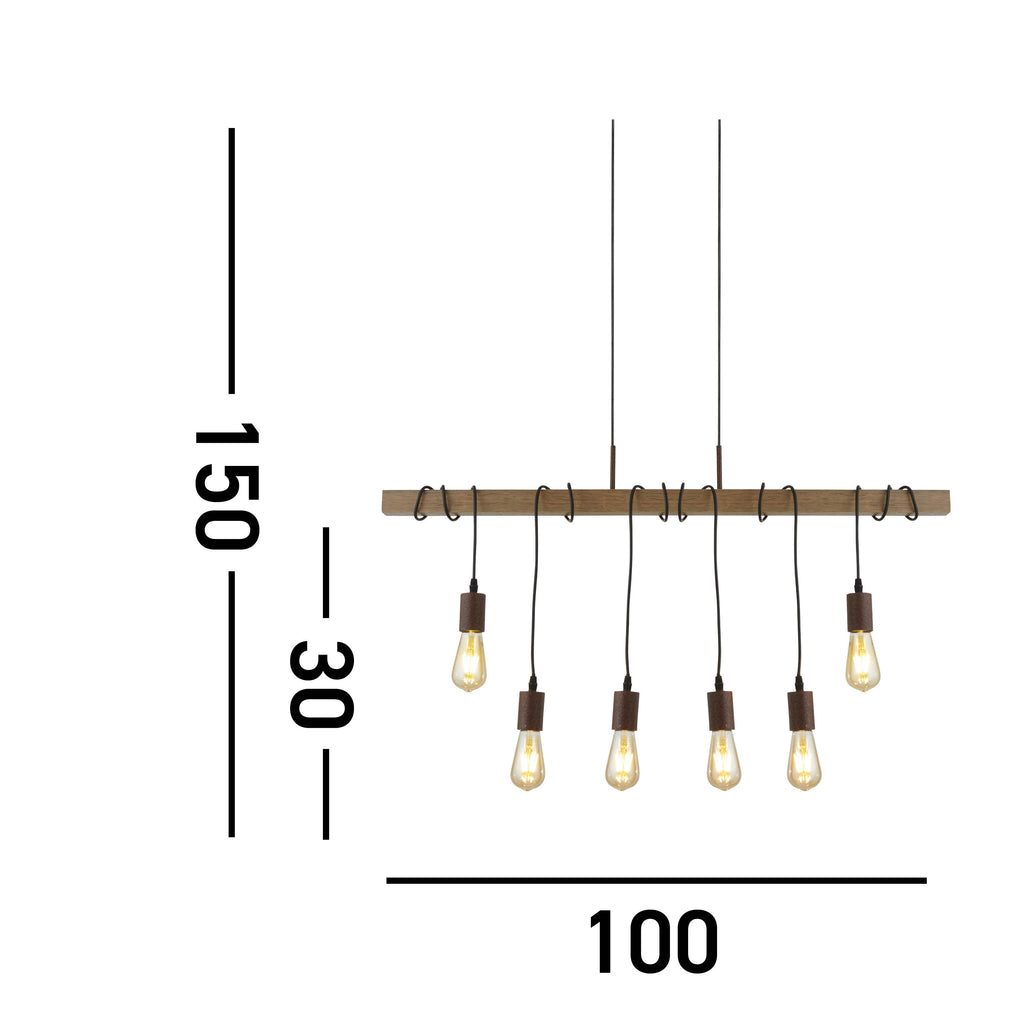 The Barn 6Lt Pendant is a striking lighting fixture that seamlessly blends rustic charm with modern design. The natural brown wood colour scheme brings warmth and a organic touch to any room. The pendant offers adjustable height options, allowing you to customise the lighting to suit your space. With a total height of 1500mm, it commands attention and adds an imposing presence to your interior| Height | 150cm/59.1" |
