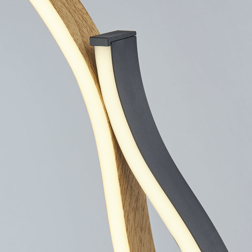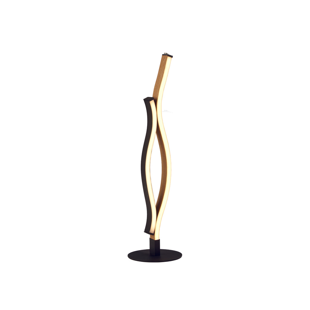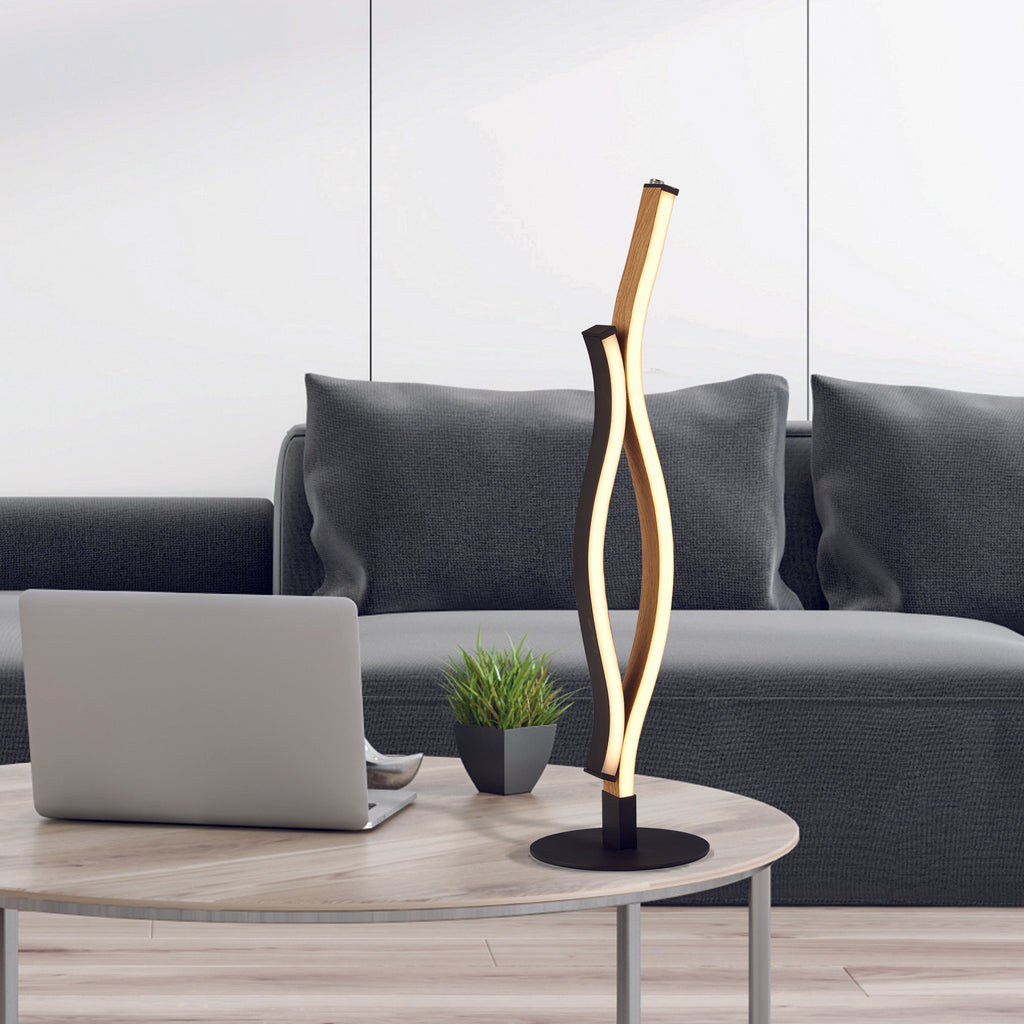 The Bloom Table Lamp is a stunning addition that combines style and functionality to elevate any living room or bedroom. Crafted from a blend of black metal, wood effect and silicon, it offers durability and a touch of elegance. The lamp features a captivating swirl design that adds a distinctive and visually striking element and an artistic focal point that draws attention and enhances the overall aesthetics of the room. The colour temperature of this black and wood table lamp can be changed through the 3 touch change function, fusing style with ease of functionality.| Height | 48cm/18.9" |