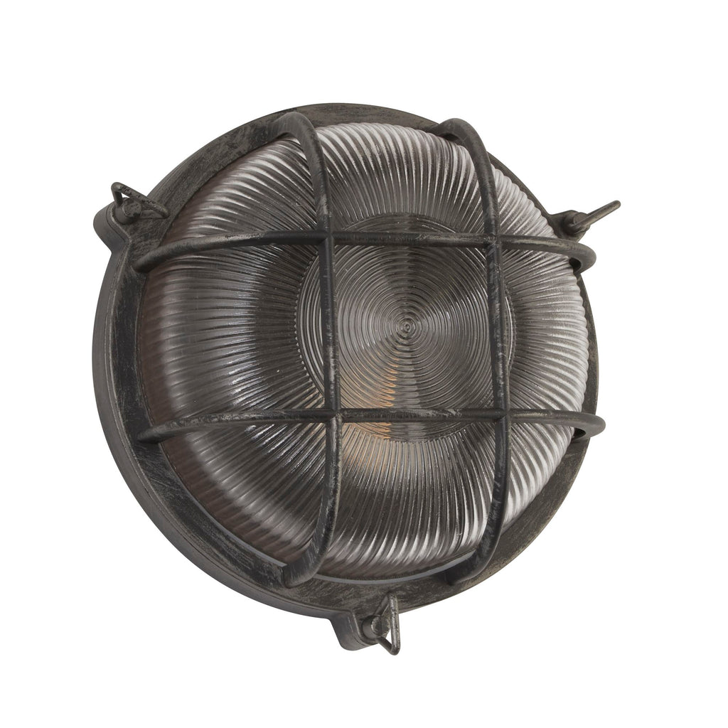 Searchlight Bulkhead Round Black & Silver Outdoor Wall Light