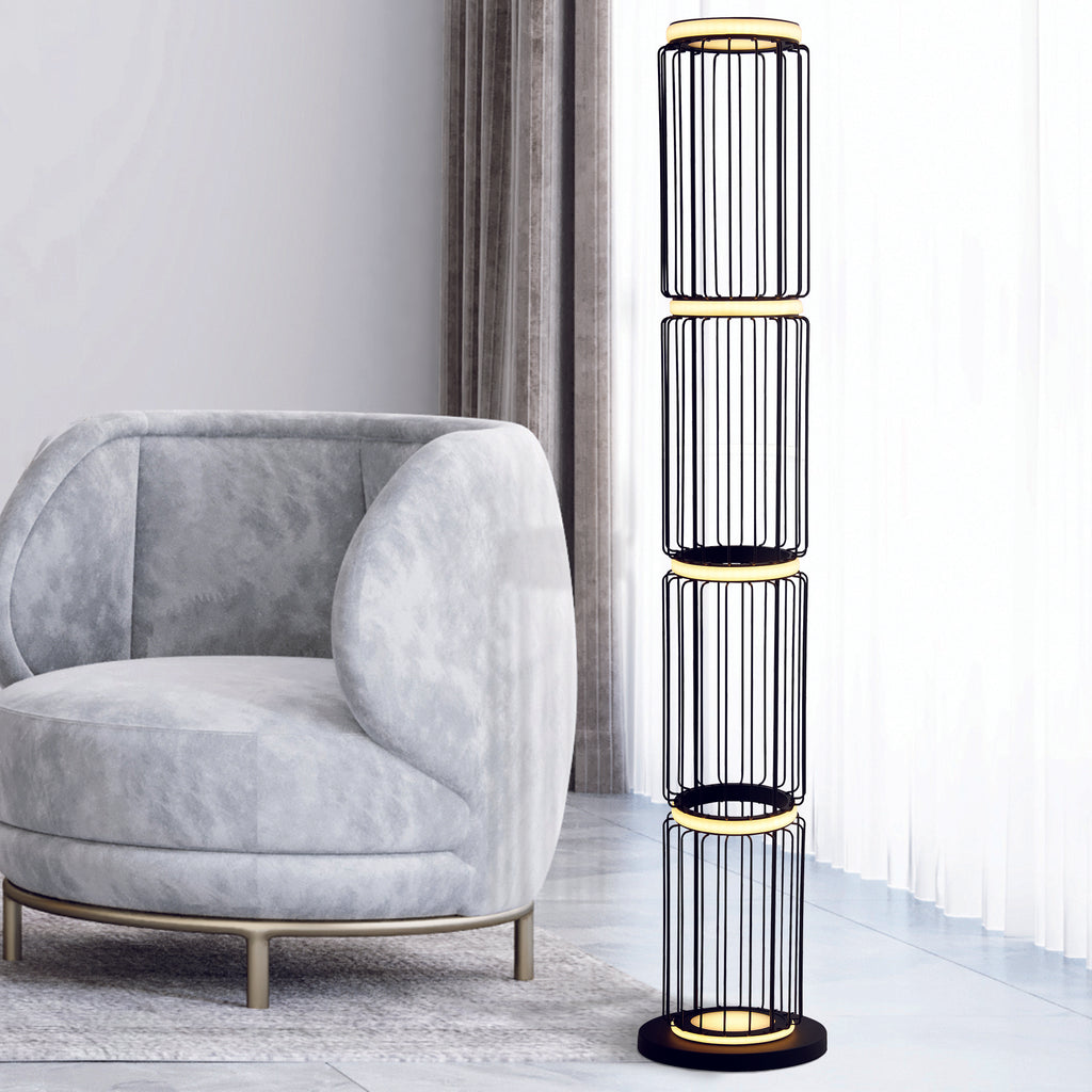 The Circolo Cage Floor Lamp features a sleek cylinder shape, providing both downward and upward lighting. With its contemporary design, this floor lamp offers a balanced and evenly distributed illumination, making it suitable for various applications. Whether you desire ambient lighting in your living room, or bedroom the Circolo Cage Floor Lamp in sand black with a white trim is the perfect lighting solution. LED's use up to 75% less energy and last up to 20 times longer than incandescent bulbs, making this floor lamp energy efficient and a way to keep household expenses lower. Alternative Pendants, flush ceiling lights and table lamp also available in the Circolo range.| Height | 117cm/46.1" |
