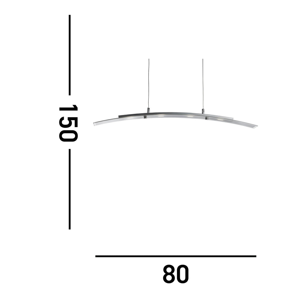 Simple yet stylish, the Curve 4 light pendant is ideal to be hung over a kitchen island or dining table. Crafted using satin silver metal and with frosted glass, this 80cm long pendant will add a contemporary feel to any room. Height adjustable to 1.5m, this LED pendant is also energy efficient, helping to reduce household bills.| Height | 150cm/59.1" |