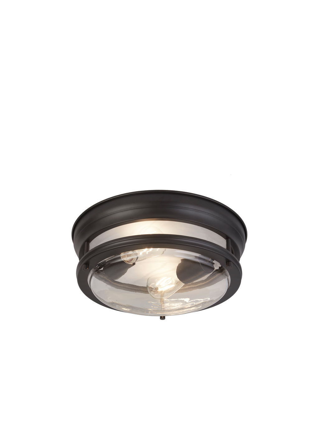Searchlight Glasgow 2 Light Black Flush - Clear Glass Shade
