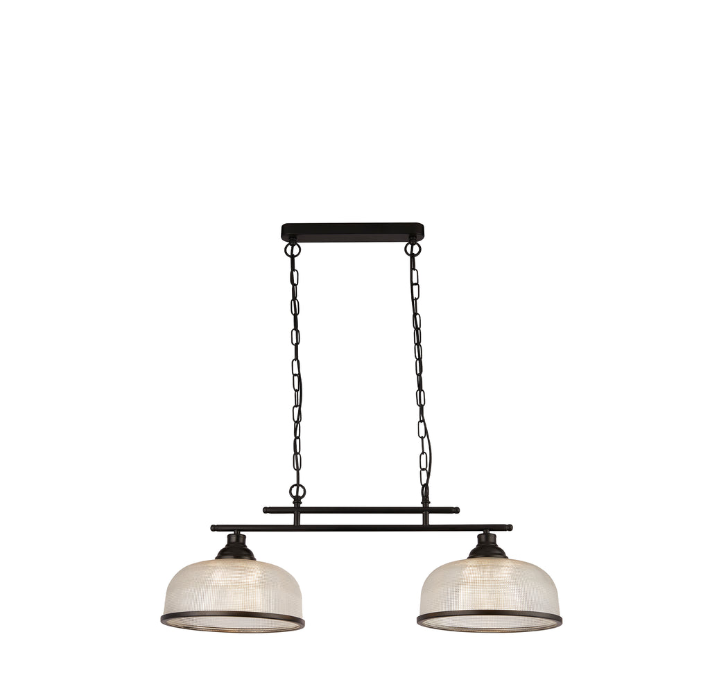 The Highworth 2Lt Bar Pendant is a captivating lighting fixture that is ideal for any kitchen, dining area or living room. It features a sleek combination of mild steel and holophane style glass in a stunning matt black and clear colour scheme. Its versatile style seamlessly complements both modern and traditional spaces while its height-adjustable design allows for personalised lighting. The shade boasts a classy black metal trim, while the clear holophane style glass shade with a ribbed inner adds a touch of elegance.| Height | 120cm/47.2" |