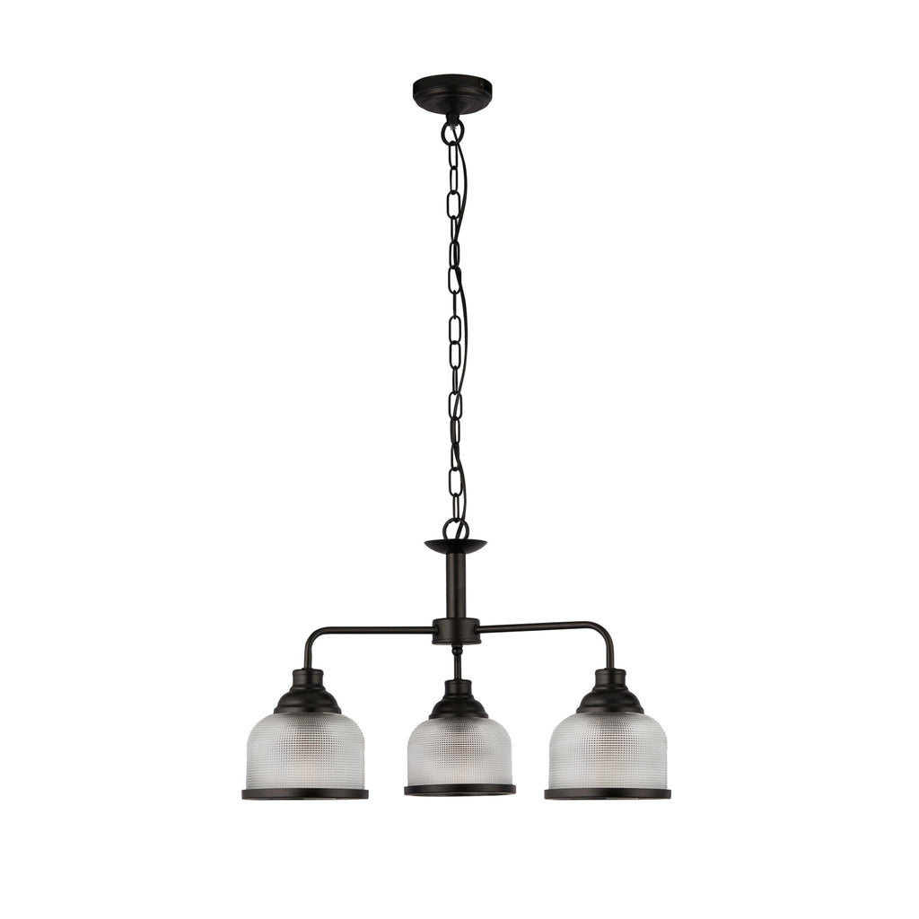Searchlight Highworth 3 Light Black Pendant - Holophane Style Glass Shade