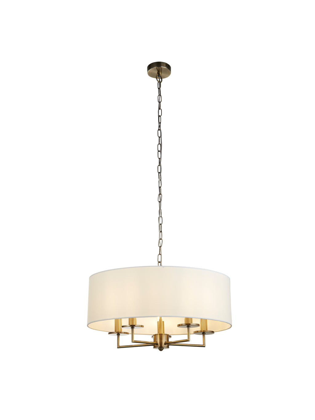 Searchlight Knightsbridge 5 Light Brass Pendant- White Linen Shade