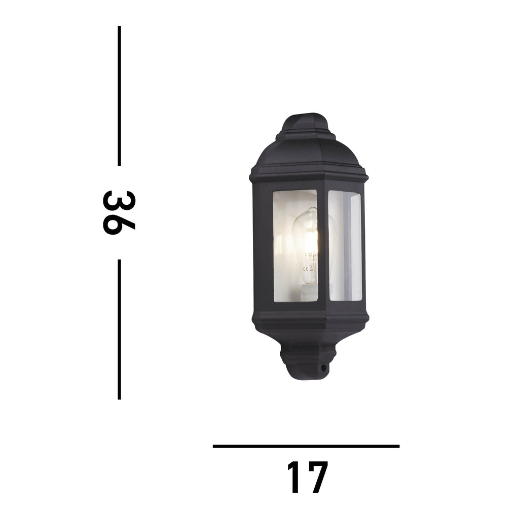 The Maine outdoor wall light is in a lantern style, and is designed to give a stylish finish to any garden, outdoor space or balcony whilst offering the safety aspects of outdoor lighting. Featuring a black finish and exposed glass shade, The Maine outdoor wall light will look great placed outside any home. Its IP44 rating means this outdoor light can withstand the elements.| Projection | 10cm/3.9" |