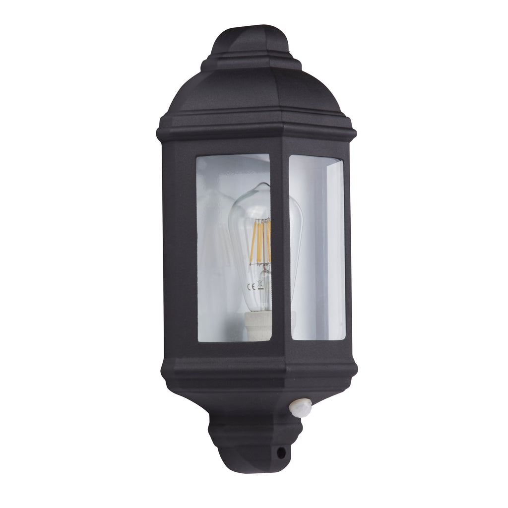 The Maine outdoor wall light is in a lantern style, and is designed to give a stylish finish to any garden, outdoor space or balcony whilst offering the safety aspects of outdoor lighting. Featuring a black finish and exposed glass shade, The Maine outdoor wall light will look great placed outside any home. Its IP44 rating means this outdoor light can withstand the elements. With the addition of a PIR sensor to detect movement, this outdoor wall light also offers the safety aspect of detecting movement.| Projection | 10cm/3.9" |