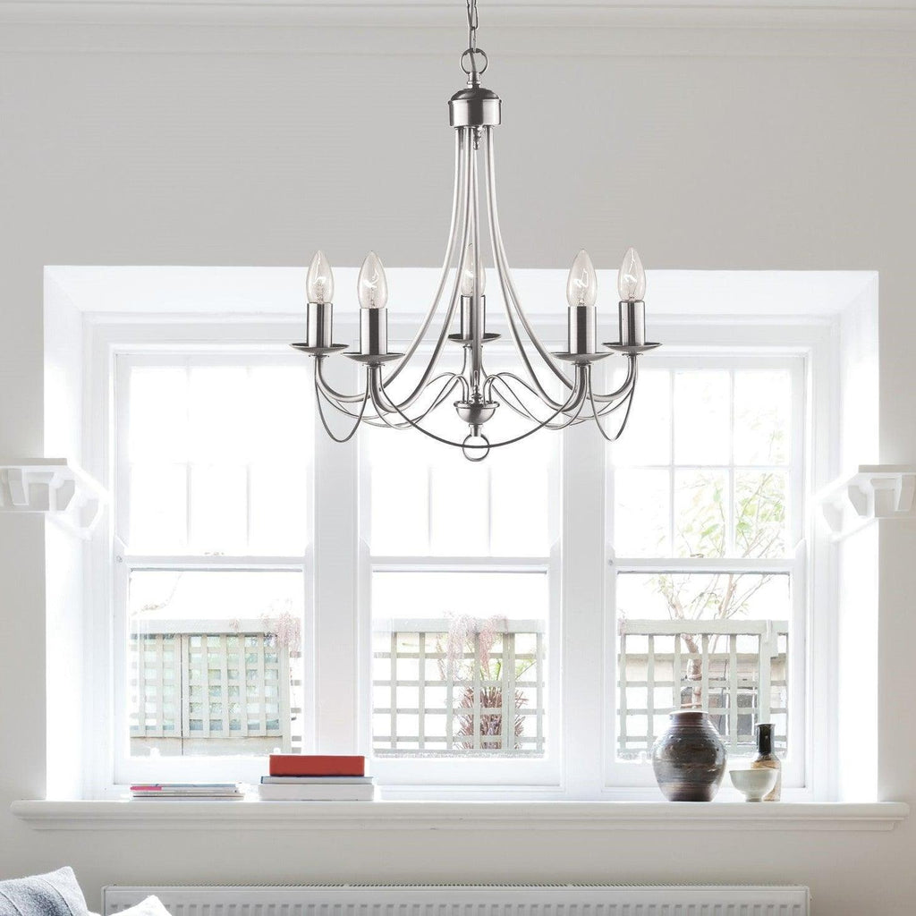 Searchlight Maypole 5 Light Satin Silver Ceiling Pendant