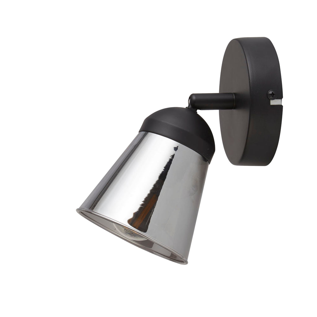 Searchlight Mega Spotlight Black Wall Light - Smoked Glass Shade