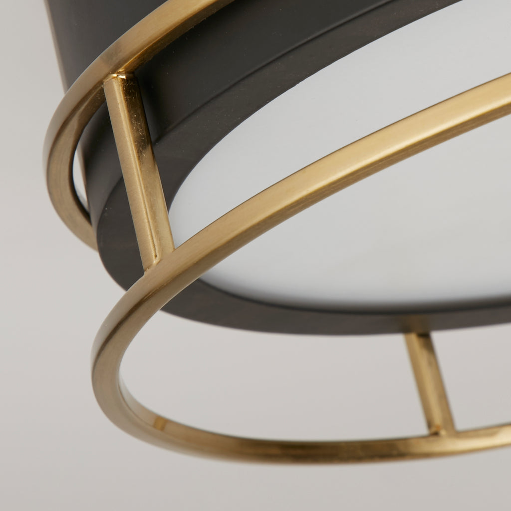 Upgrade the style of any space with the Phoenix 2 light Flush in black and brass. With brass metal and a frosted glass diffuser, this sleek and modern flush is designed to be mounted close to the ceiling, an excellent choice for rooms with low ceilings or limited vertical space. Crafted with a combination of mild steel and glass, this flush ceiling light features a black and brass finish that adds a touch of sophistication to any room. The compact profile of the flush design allows it to seamlessly blend into your space, creating a clean and unobtrusive look. Its brass finish adds a touch of modernity and reflects light, while the white frosted shade provides a clean and crisp appearance. This combination of colours enhances the visual appeal, making a statement piece in any room. The Phoenix flush is equipped with 2 lights to provide ample illumination. IP44 rated, this flush ceiling light is ideal for a bathroom, but stylish enough for any room in the home.| Height | 9.5cm/3.7" |