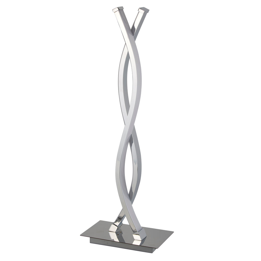 This Platt table lamp has an eye-catching wave design with the lights on the outer of each side. A slim line chrome body weaves in and out creating a stylish aesthetic, which will act as a centrepiece for any contemporary home. LED's use up to 75% less energy and last up to 20 times longer than incandescent bulbs.| Height | 47cm/18.5" |