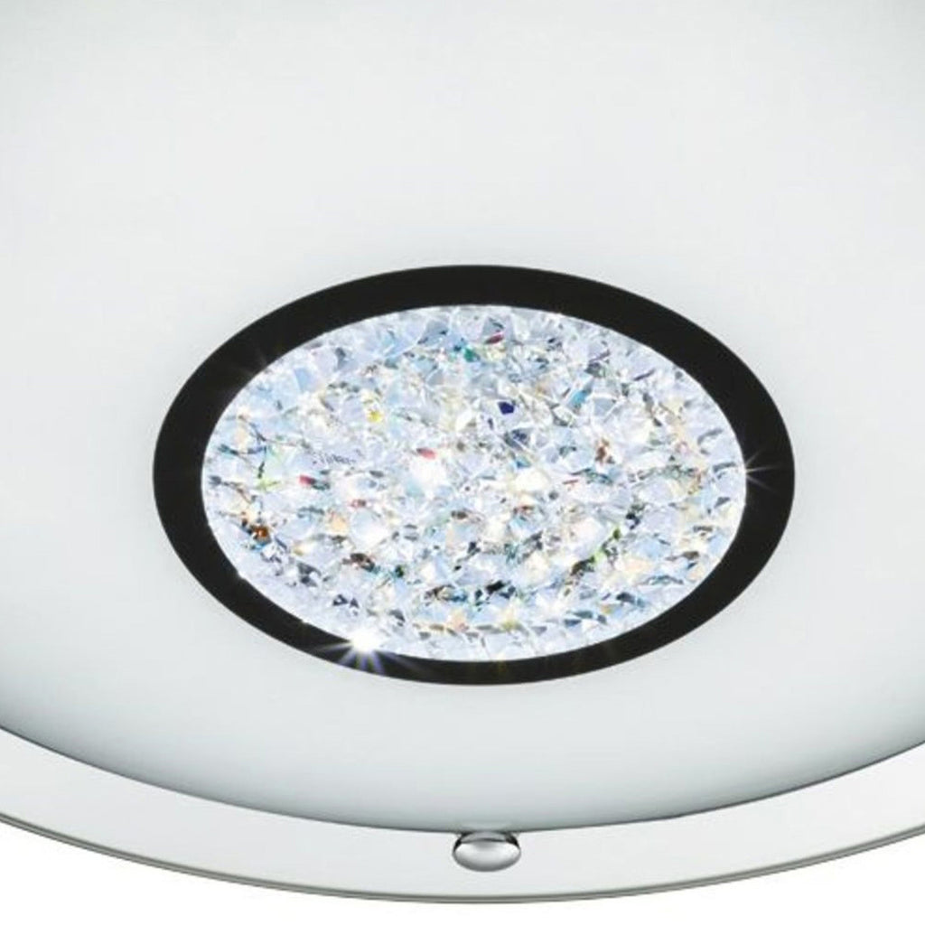 The Portland flush is designed with a mirrored chrome halo and frosted glass shade, complemented with a detailed crystal centre. With an IP44 rating, so suitable for use in a bathroom, this stylish flush fitting can be a great addition to your home and give it a contemporary style. Using LED technology, this flush isa energy efficient as LED's use up to 75% less energy and last up to 20 times longer than incandescent bulbs.| Height | 8cm/3.1" |