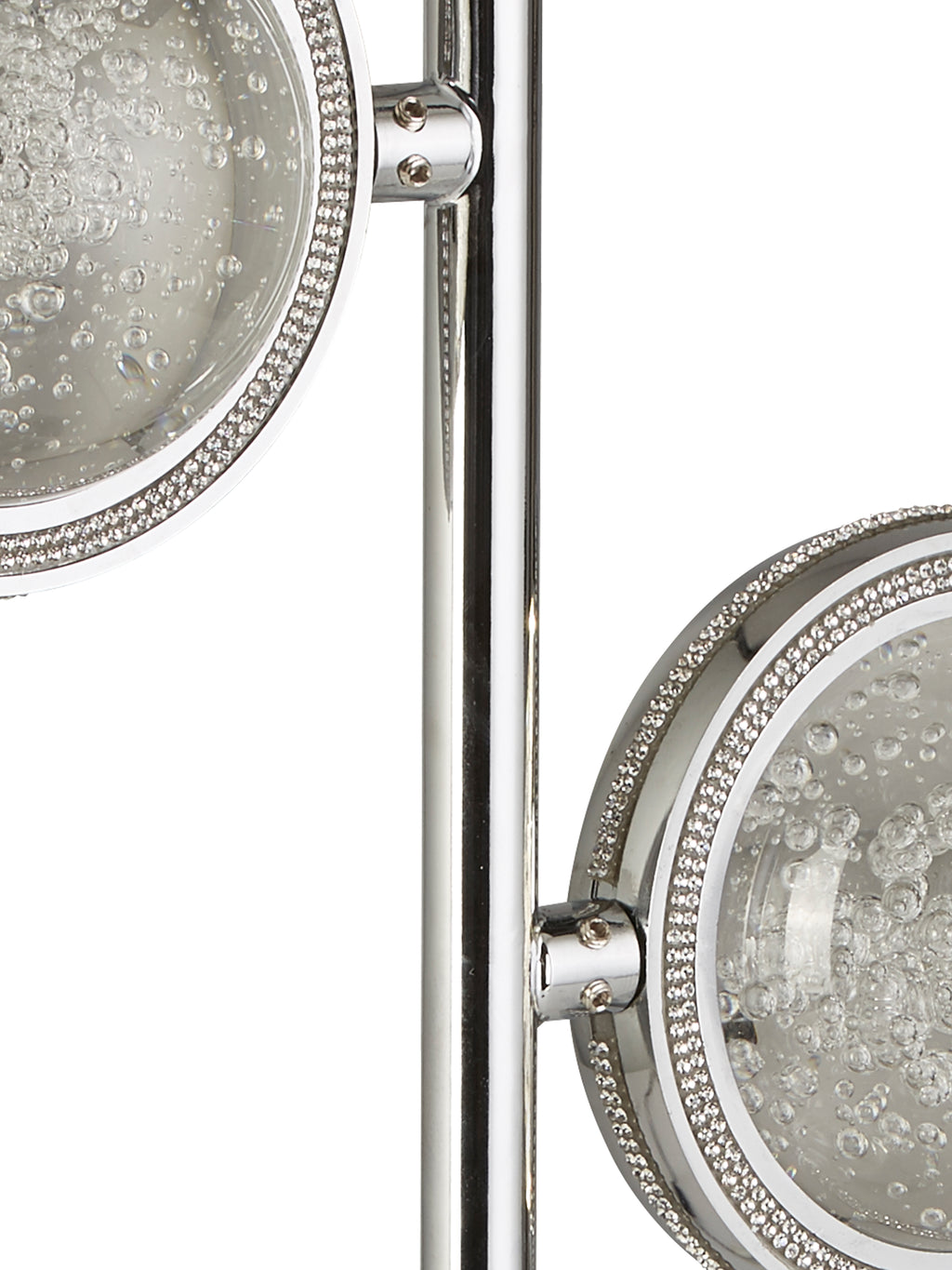A modern yet luxurious table lamp that casts a stunning glow at whatever level it's set at, Quartz is a beautiful addition to any living room or sumptuous bedroom. The bubbled glass is surrounded by a stunning diamante detail on a chrome stand and so would add a statement feature to more minimalist homes but also complements more luxurious surroundings. LED's use up to 75% less energy and last up to 20 times longer than incandescent bulbs.| Height | 46cm/18.1" |