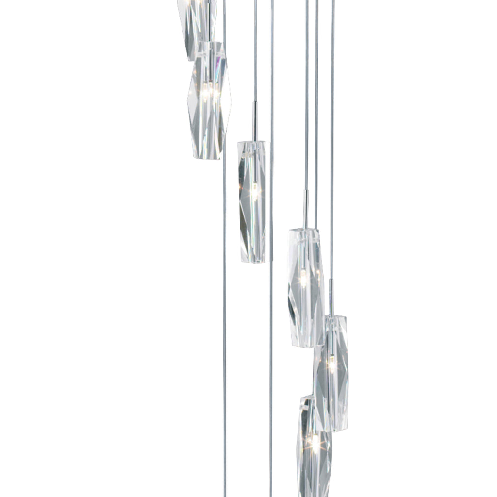 Elevate your interior decor with the mesmerising beauty of the Sculptured Ice Multi-Drop Pendant in chrome and glass. This exquisite lighting fixture combines sleek design and captivating illumination to create a focal point that enchants and dazzles.| Height | 125cm/49.2" |