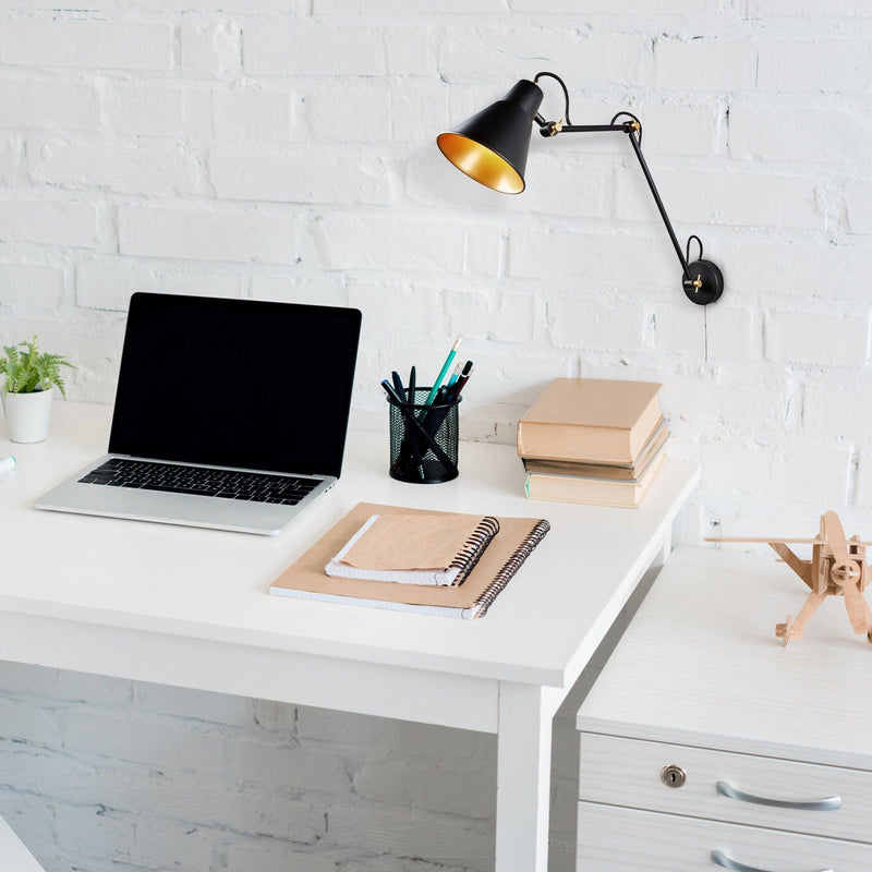 Searchlight Swing Arm Adjustable Black & Gold Wall Light 7403BK
