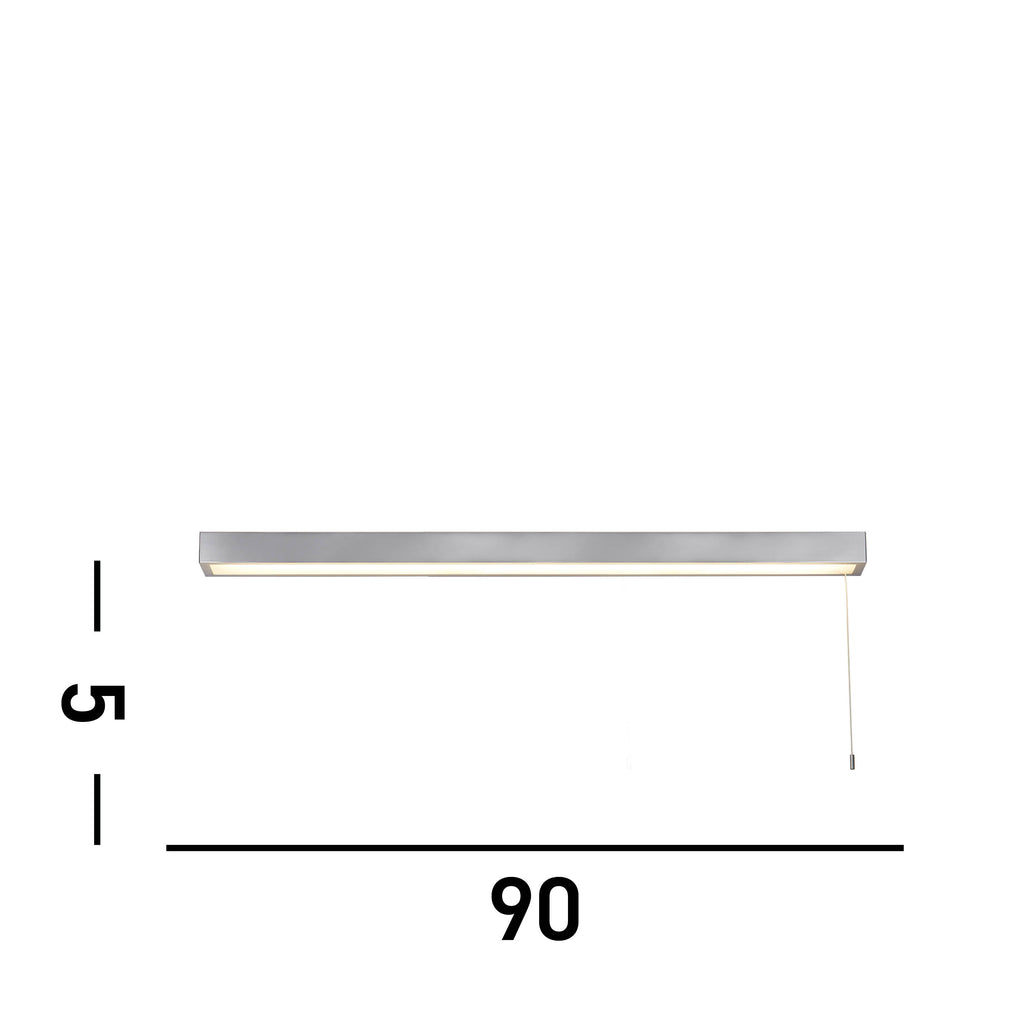 Illuminate your space with the stylish and functional Venti Bathroom Wall Light. Combining contemporary design with convenient features, this wall light is the perfect addition to any home. With its polished chrome finish, white frosted polycarbonate panel, and LED technology, it brings a touch of elegance and efficiency to any room. The Venti 90cm Wall Light features a sleek polished chrome finish that adds a modern flair to your decor. The white frosted panel diffuses the light, creating a soft and welcoming glow. Its IP44 rating makes it an excellent choice for bathrooms or other moisture-prone spaces. The LED technology is ideal for saving energy and reducing household expenses.| Projection | 8cm/3.1" |
