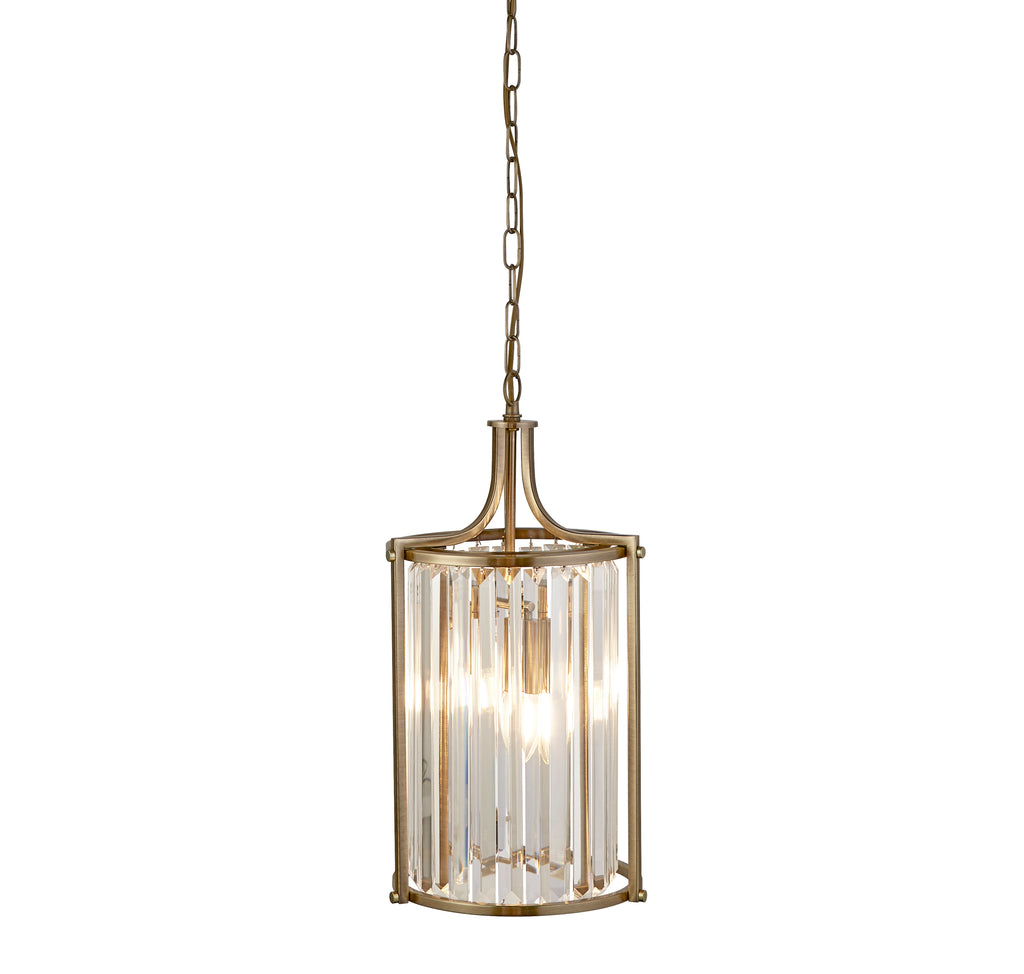 Searchlight Victoria 2 Light Brass Pendant With Crystal Shade