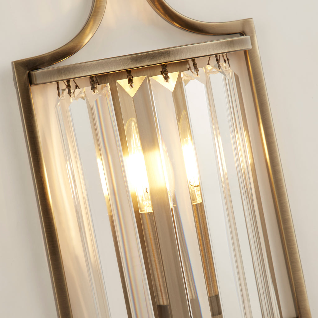 The Victoria Wall Light is an exquisite addition to elevate your home decor with grandeur and sophistication. The beautiful crystal glass detail sparkles, refracting light and casting enchanting patterns throughout the room. Its mere presence captivates guests, sparking conversations and enhancing your interior design. The crystal glass' reflective qualities create a brighter, more spacious feel, while the textured glass shade diffuses light for a gentle, inviting ambiance free from harsh glares. With its antique brass finish, this wall light seamlessly blends with contemporary decor, infusing your space with opulence and refinement.| Projection | 11cm/4.3" |